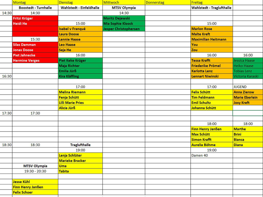 Hier ist der vorläufige Sommer-Trainingsplan. Guckt nochmal, ob das passt. Ansonsten meldet Euch bitte bei Sönke (0172 456 77 78).